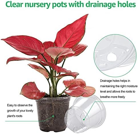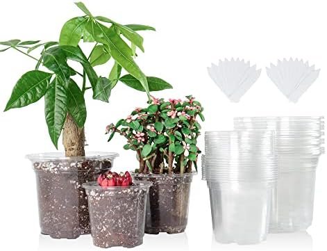 36 Packs 5/4/3.5 Inch Reinforced Clear Nursery Pots with Drainage Hole, Transparent Variety Pack Plastic Plant Pot Seedling Planter Seed Starter Flower 20pcs Labels
