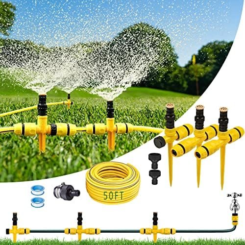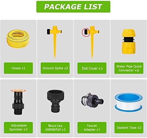 ✅【Lawn Sprinkler Include】 Sprinklers for lawn includes:adjustable sprinklers x 3 ,nozzles connector x 3,ground spikes x 3, end cover x 1, garden hoses x 1,water pipe quick connector x 6,faucet adapter x 1 ,sealant tape x 2. Easy to install and tool-free, sprinkler system kit is perfect for watering lawns, flower beds, raised gardens, vegetable gardens.