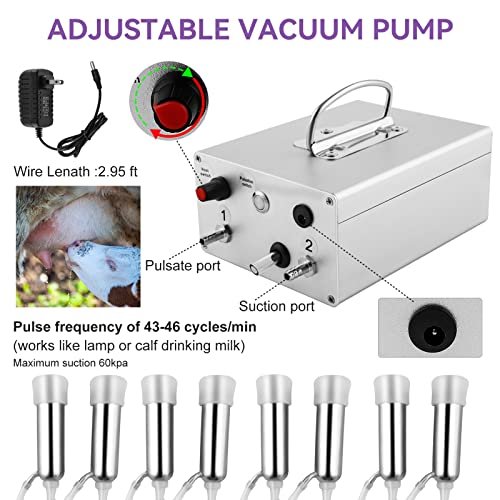 Time & Labor-Saving: The pulsating cycle is 43~46 times per minute, maximum suction 60kpa (please reduce suction for the first time to protect your goat), using a milking machine saves at least one-half of the labor and time.