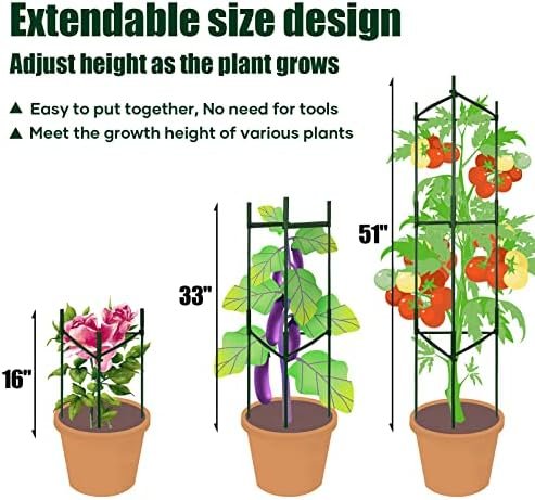 Each cage set features 9 assembled 50 inches sturdy stakes made of durable steel for reliable strength.