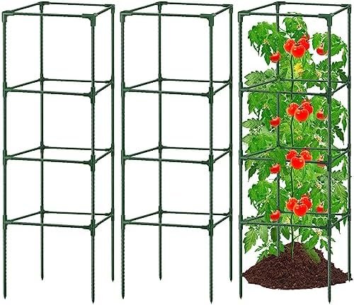3Pack Tomato Cages for Garden,Square Tomato Plant Cage Support Heavy Duty Pole 57*15.4*15.4 Inches,Steel Plant Tower Stakes,Cherry Tomato Trellis Cucumber for Climbing Vegetables Flowers Fruits(Green)