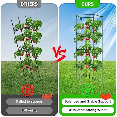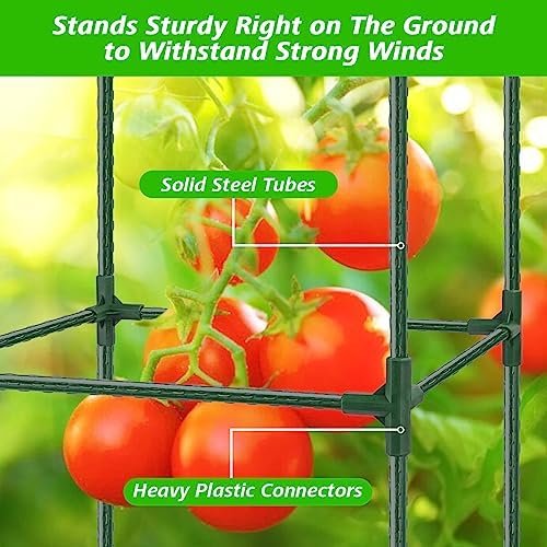 【Upgraded 3 Sets Tomato Cages】3 Separate Towers Easy to Assemble than three legged tomato baskets, wire ones and metal cages, those are balanced and stable support the heavier fruit tomatoes, cucumbers, garden plants. Perfect for growing fruits, vegetables, flowers that require climbing.