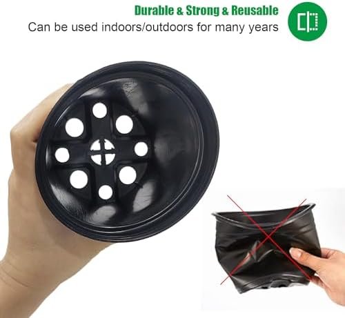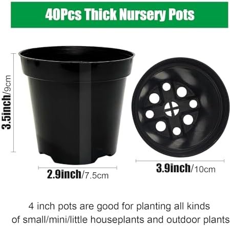 【Black Color Pots】4 inches nursery pots, 40 pack, Black color, sturdy and long term used outdoor or indoor. Small drainage holes and sturdy bottom to support the soil weight, never shap changing.