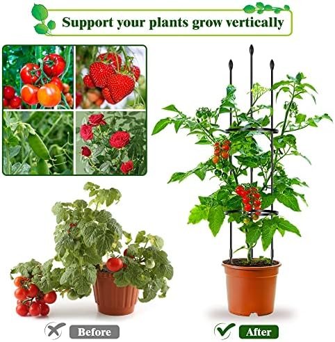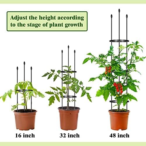 Height Adjustable Tomato Cages: the plant support cages are equipped with connecting pipes, which can support the cage and offer the convenience of adjusting the height to accommodate the various stages of plant growth; With a maximum height of up to 48 inch, this versatile support system is designed to meet the needs of plants of varying heights, providing robust and sturdy support for your beloved fruits and vegetables