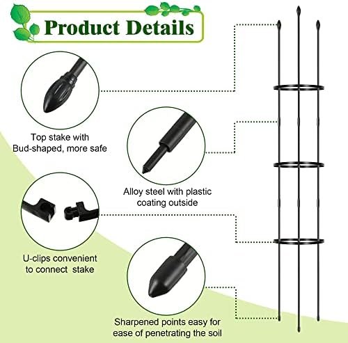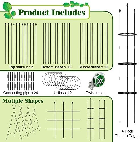 Easy to Assemble: each package contains 4 pack garden trellis and 1 twist tie, each pack of vegetable trellis comes with 9 x 16 inch stakes, 3 x U clips, 6 x small connecting pipes, firstly use connecting pipes to connect the stakes, then attach U clips to stakes, lastly adjust the height or different shapes according to your plants