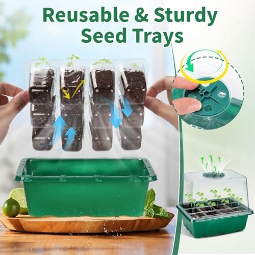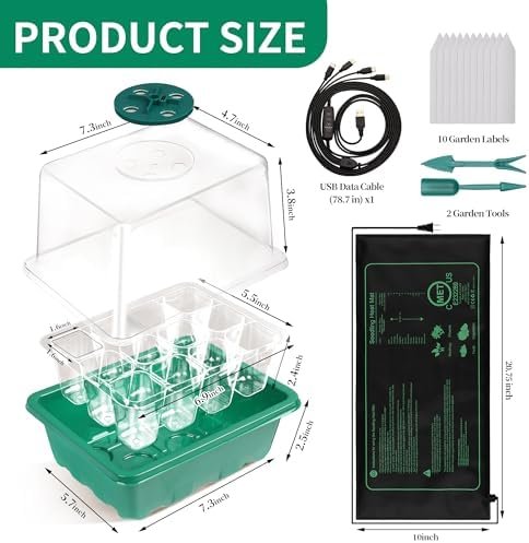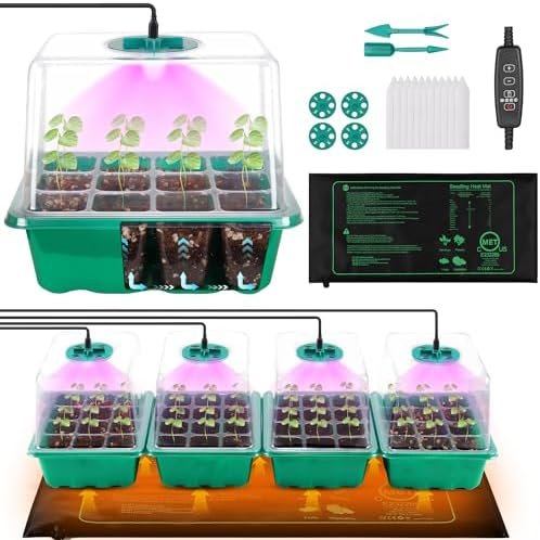 48-CELL SEED STARTER GERMINATION KIT WITH LIGHT HEAT MAT & INDOOR SEEDLING PROPAGATION TRAYS PERFECT FOR SEEDS GROWTH