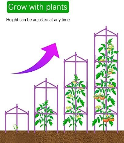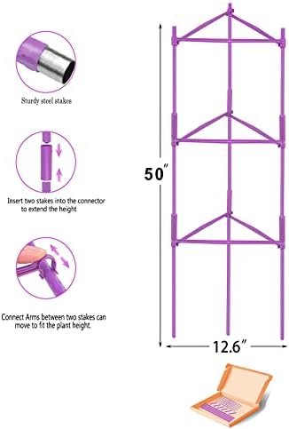 EASY TO ASSEMBLE:Easy install and disassemble without any tool,simply set up tomato stakes with snap-on arms, 50 inch height tomato trellis meets the common height of most tomato plant. If necessary, it also can installed to make four-layers cages for 66 inch tall .Just use your mind. Maximum height UP to 85 inch when stacked in five-layer. Besides, it is convenient to disassemble and store for repeat use next season.