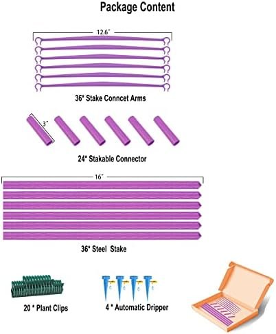 GREAT GARDEN TRELLIS KIT: Item comes with 4 self watering spikes that help keeping your plants with enough water any time . Compare with those situation people forget to watering , plant with self watering device will grow faster during the same time and energy saved. Besides, versatile plant clips is included , they are important and useful when you find your plant stem grow longer, conncet and support them to grow upright and achieve bigger harvest.