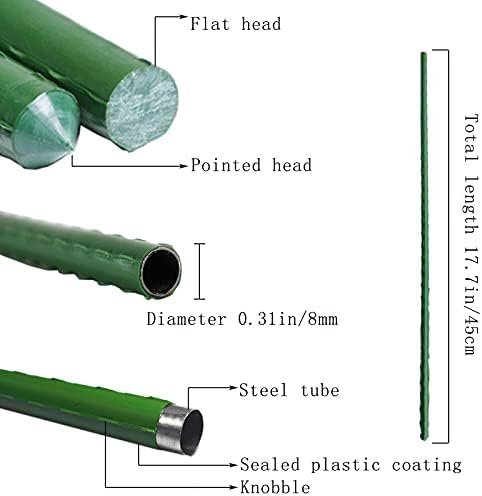 Steel Plant Stakes Dimensions: 0.31 inch/8mm diameter, 17.72 inches/45cm long. Used to build trellises or tapered tents for climbing plant support.
