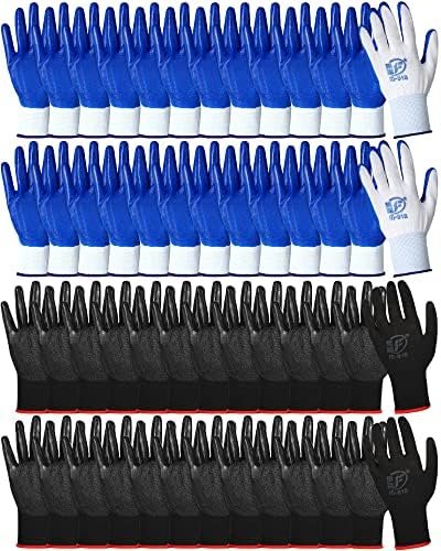 You will receive 48 pairs of construction gloves in total with length in approx. 23 cm/ 9.1 inches, in black and blue colors, each color has 24 pairs, sufficient quantity can meet your daily using and replacement needs.