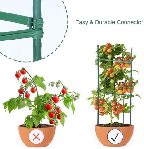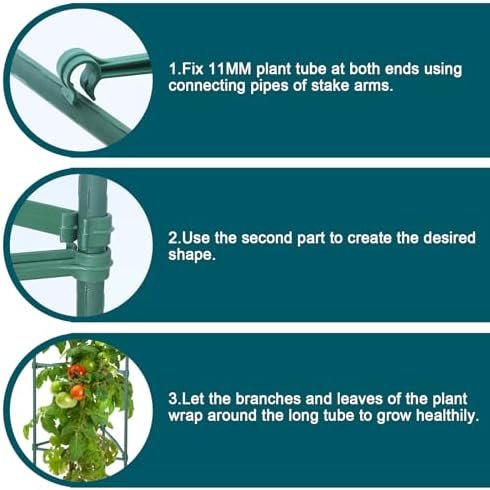 【Easy to Use】The connector is easy to assemble, you can DIY assemble into a triangle or rectangle for your need. Use for tomato cage attach 11mm diameter plant stakes.