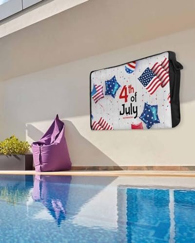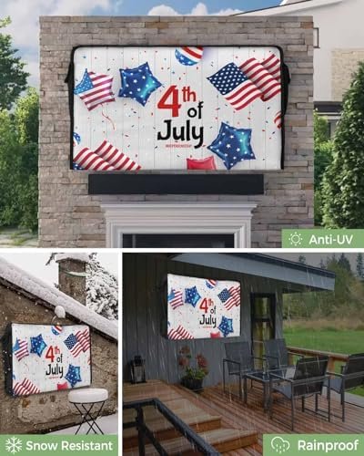 4th of July Outdoor TV Cover 32 Inch American Flag TV Enclosure Independence Day Wood Grain Balloon TV Covers for Outside TV Display Screen Protector with Remote Control Pocket
