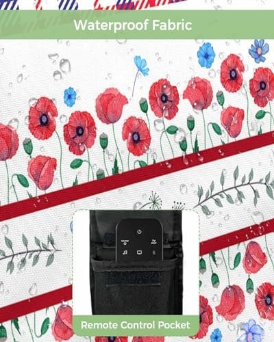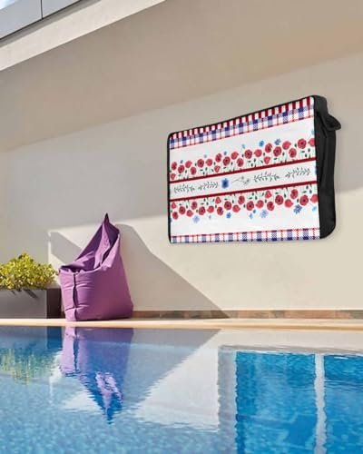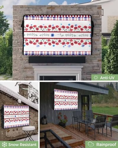 4th of July Outdoor TV Cover 32 Inch Flower Floral Blue Red TV Enclosure Independence Day Stripes Patriotic Liberty TV Covers for Outside TV Display Screen Protector with Remote Control Pocket