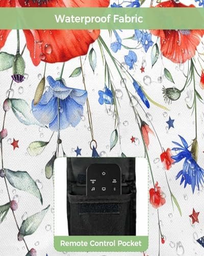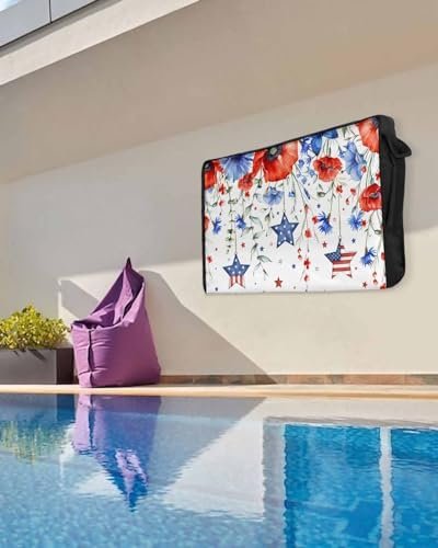 4th of July Outdoor TV Cover 32 Inch Poppy Flower TV Enclosure Independence Day Star American Flag TV Covers for Outside TV Display Screen Protector with Remote Control Pocket