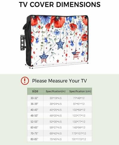 Be the first to review “4th of July Outdoor TV Cover 32 Inch Poppy Flower TV Enclosure Independence Day Star American Flag TV Covers for Outside TV Display Screen Protector with Remote Control Pocket”