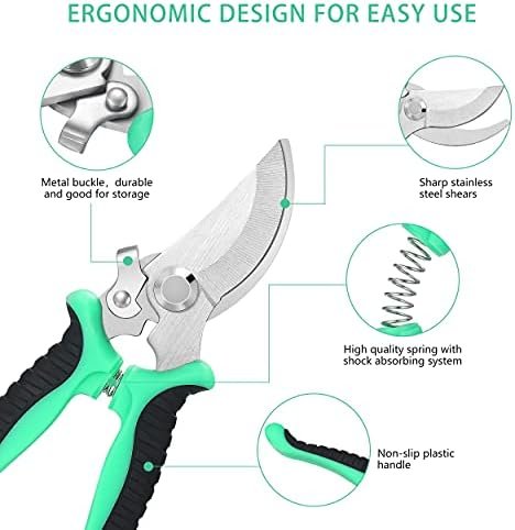 MAKE PRUNING WORK EASIER: Rust-resistant stainless steel blade are sharp and durable for easy and smooth cut.Anti-slip and ergonomic handle make the gardener clippers more comfortable in your hand.Easy-open spring action reduces hand fatigue while cutting. you can easily to cut without damaging the vital stems and branches of your plants.