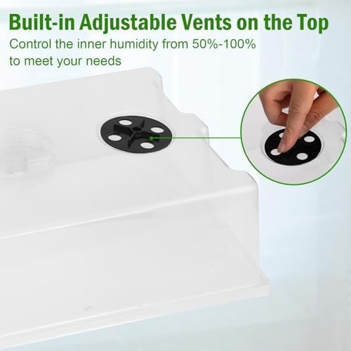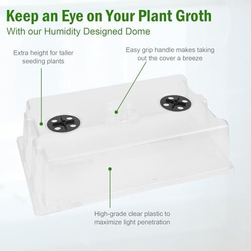EXCELLENT HUMIDITY CONTROL – Our high-rise & transparent domes for growing trays have 2 adjustable vents, which are designed for easy airflow control, maximum light penetration and the best viewing of your plant starts.