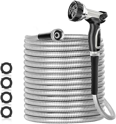 【Durable Garden Hose】: Made of the 304 stainless steel and multi-layer flexible inner tube, its structure is stronger than traditional rubber water pipes. Also it can withstand dog bite, dragging through wall edges and ground and will not break, crack or leak.