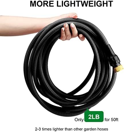 Say goodbye to heavy, unwieldy hoses and hello to our lightweight garden hose. At just 2.0 lb pounds for 50ft hose, our hose is easy to carry, maneuver, and store.