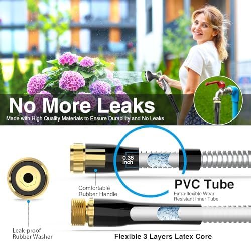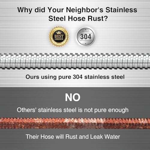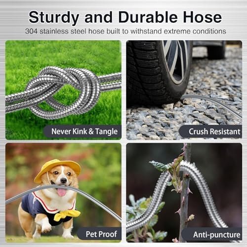 【2024 Version Durable Metal Garden Hose 50ft】- Crafted with an advanced vision for 2024, this 50ft metal garden hose is encased in 304 stainless steel, offering superior protection against punctures and bites from pets compared to rubber hoses. Its capability to operate efficiently in various temperatures ensures a longer service life, bidding farewell to the annual water hose shopping routine and welcoming savings.