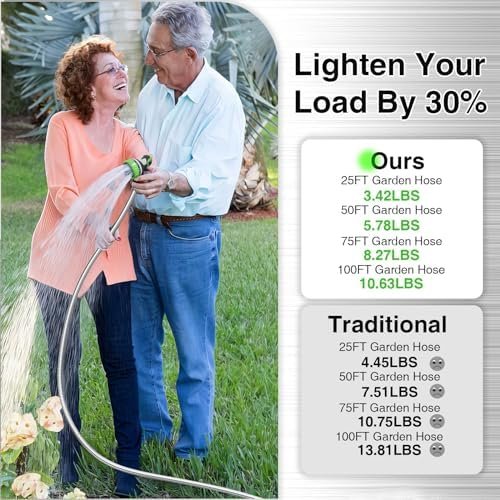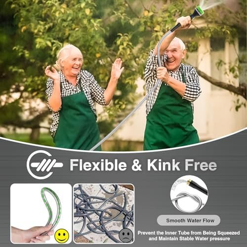【Flexible and Maneuverable】 – Our Metal Garden Hose 50ft is crafted to be lightweight and exceptionally flexible, Can be used for watering gardens and cleaning houses, cars, yards, pet bathrooms, and so on. Additionally, 50ft hose is the most popular size option and can easily cover your entire yard.