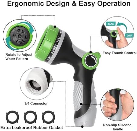 Threaded with the 3/4” Garden Hose Thread (GHT), this water hose nozzle fits all standard garden hoses.
