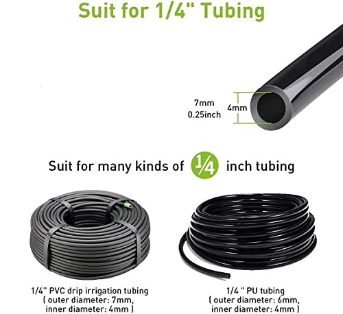 Applicable Irrigation Tubing:Barb connector of adjustable dripper accepts the following micro-tubing:4mm(inner)-7mm(outer). Flexibility- Allows placement of drippers exactly where necessary.