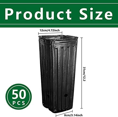 50pcs Plastic Deep Plant Nursery Pots,12.2”Tall Tree Pots,Black Deep Seedling Container Pots with Drainage Holes for Indoor Outdoor Gardening (4.72″ Wx12.2 H)