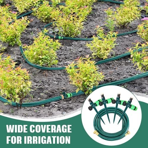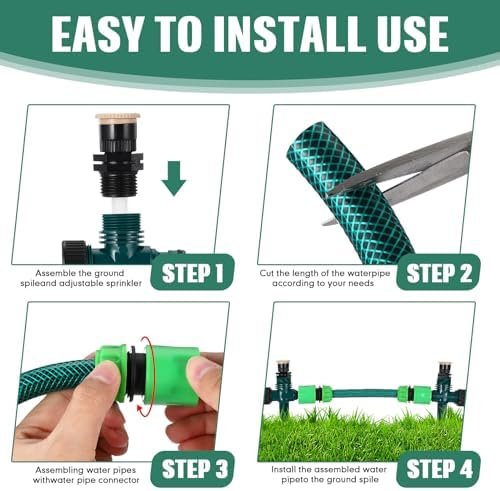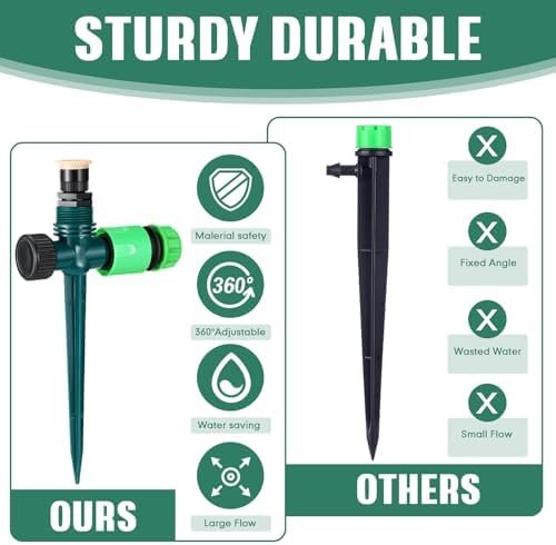 Efficient and Stable Watering: each sprinkler included in this above ground sprinkler kit is secure on an attached 7.79 inch high ground stake; It ensures the sprinkler head penetrates deep into the ground, maintaining stability even under pressure; This sprinkler system kit for lawn is particularly suitable for watering small lawns or flower beds exposed to plenty of sunlight
