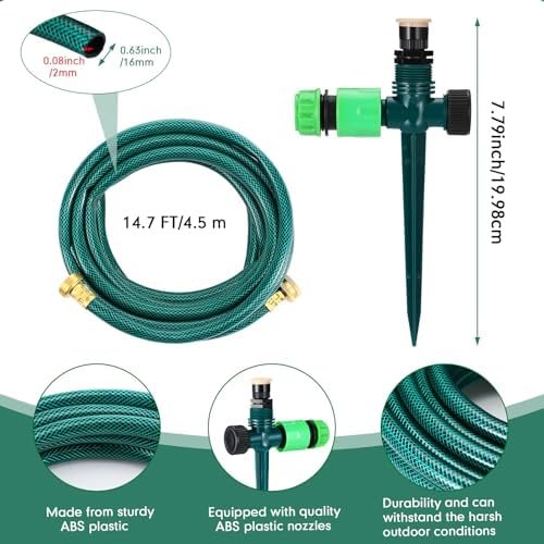 Quality Material and Suitable Size: crafted primarily from durable PVC, this above ground sprinkler system kit is robust enough to resist leaks, pinholes, UV rays, and hydrolysis over an extended period; It contains 4 pcs of 0.63 inch/ 16 mm outer diameter garden hoses with a thickness of 0.08 inches that span approximately 14.76ft, offering an overall hose length of 59ft; It’s an ideal choice for those seeking a long lasting DIY lawn sprinkler system kit to cater to their watering needs
