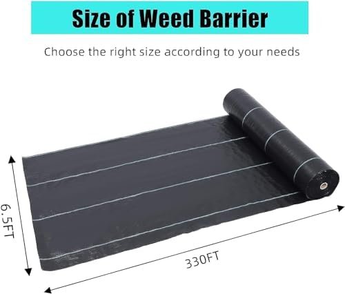【Durable PP Fabric】This 3.2 oz landscape weed barrier fabric measures 6.5 ft wide and 330 ft long. The heavy duty weed barrier is here to fully cover 2145 sq. ft area, making your life easier and 100% hassle-free. It protects your garden and flower beds from weeds, highly increasing your productivity and efficiency.