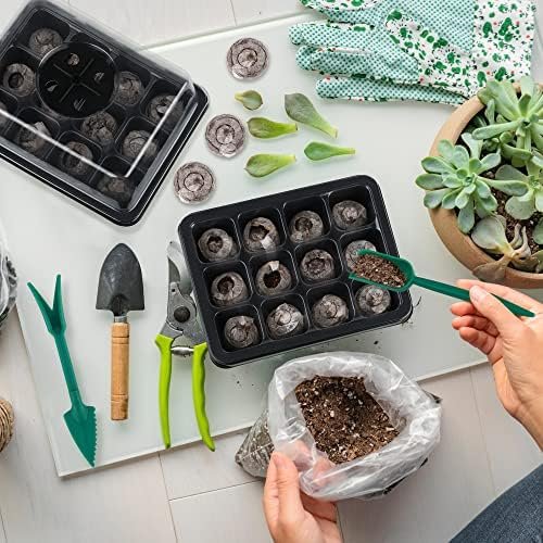 443443443443 6 Pack 12-Cells Seed Starter Tray Kit with Humidity Dome and Base, Germination Tray Including Peat Pellets, Plant Labels, Tool, Plastic Plant Seedling Starter Trays for Indoor Outdoor, Black – 4zera3a