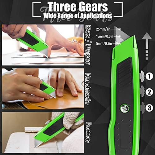 [SHARP & RETRACTABLE]: Box cutter retractable steel blades are sharp and durable, retractable design can find the suitable blade length of box cutter for use.