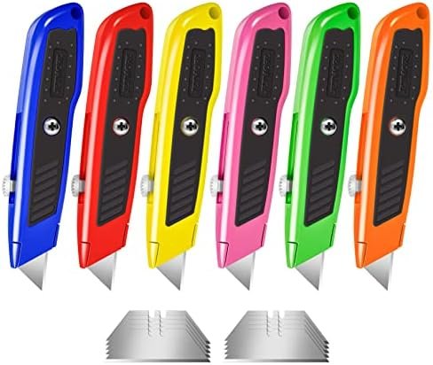 6 Pack Box Cutter Utility Knife, Colorful Razor Knife Box Cutter Knife, with 10 SK5 Blades, Box Cutter Retractable, Heavy Duty Box Knife Box Opener for Cardboard, Boxes, Cartons