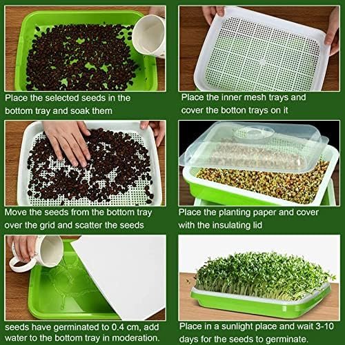 【Wide Applications】Sprouting trays can germinate many types of seeds, such as beans, peas, green beans, wheat grass seeds, herbs, radishes, etc.; If you have a cute cat, you can also use them to grow cat grass. Available for use in offices, gardens, home windowsills and other places.