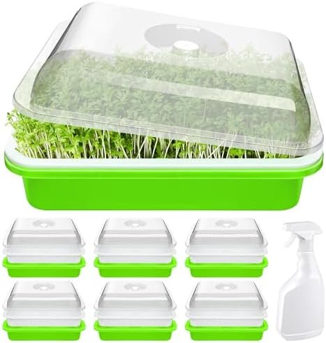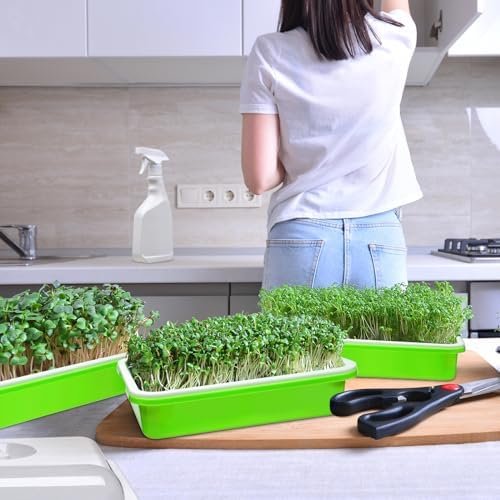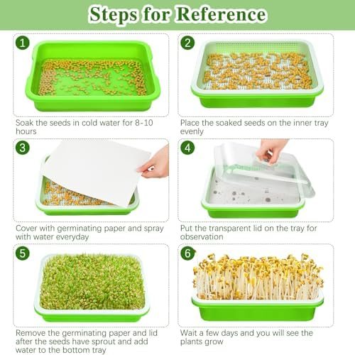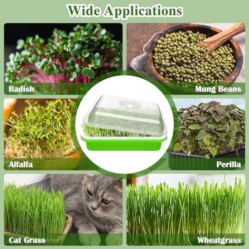 Easy to use: these microgreens growing trays are easy to use, suitable for beginners, and even children can use these seed sprouter trays with lid; you can use our seed sprouter trays with lids to grow all kinds of seeds, such as beans, peas, mung beans, wheatgrass, herbs, radishes, and more; you can also use these seed sprouter trays with drain holes to grow cat grass if you have a cat