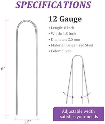CEED4U 60 Packs 6 Inches 12 Gauge Galvanized Steel Garden Stakes Staples, Heavy Duty Securing Pegs for Securing Weed Fabric Landscape Fabric
