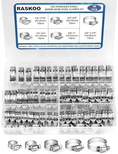 443443443443 60PCS Hose Clamp Assortment Kit, 1/4″-1-1/8″ 304 Stainless Steel Worm Gear Hose Clamps Set for Automotive, Plumbing and Mechanical Applications – 4zera3a