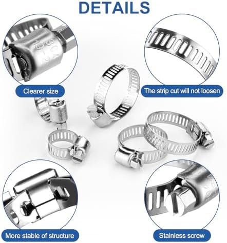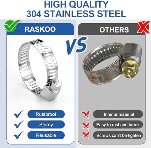 【LAST MUCH LONGER】Our hose clamps are made of high quality 304 stainless steel, clamp is sturdy and reliable, then it can be reused, anti-rust, anti-corrosion, waterproof.