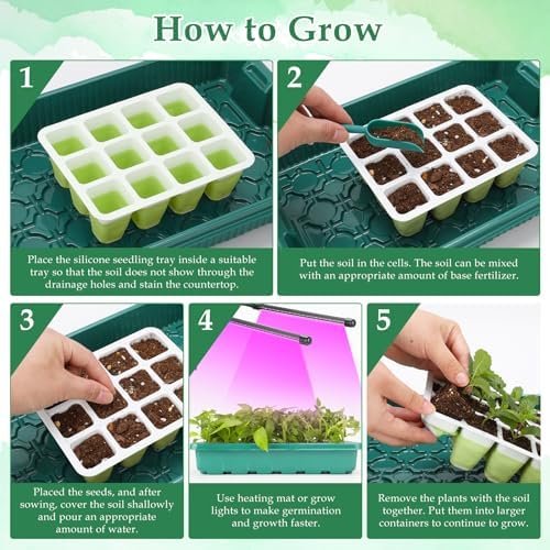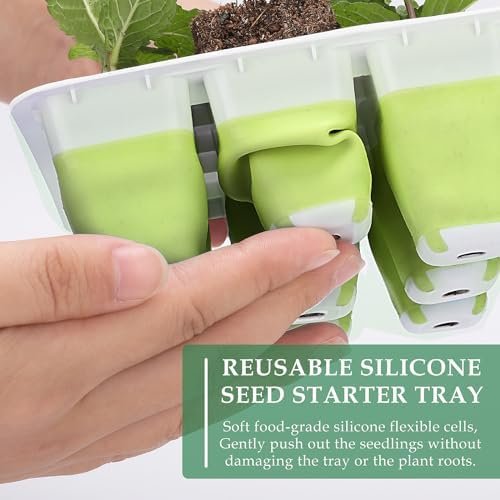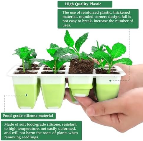 【Resuable & Durable Seedling Tray】:The plant starter trays are made of high quality silicone and reinforced plastic in one piece. Every Seed tray with 12 flexible pop-out cells, and you can wash and reuse them to extend value. The recyclable material is durable enough to reuse for a few seasons.