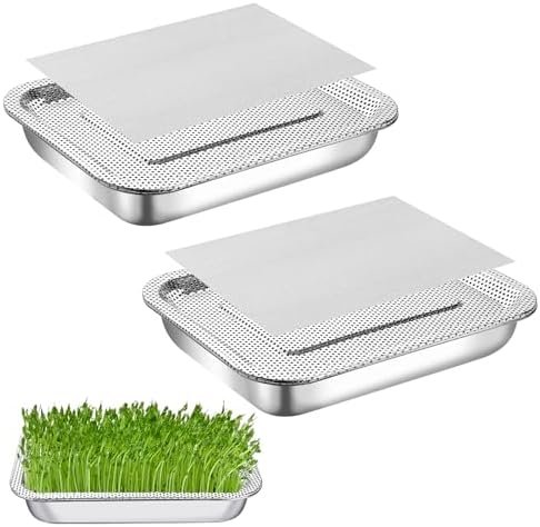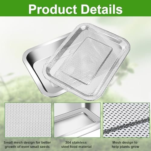 【Package Included】You will receive two sets of seed germination tray kit, 2pcs stainless steel germination tray, 2pcs stainless steel strainer, 2pcs stainless steel filter mat