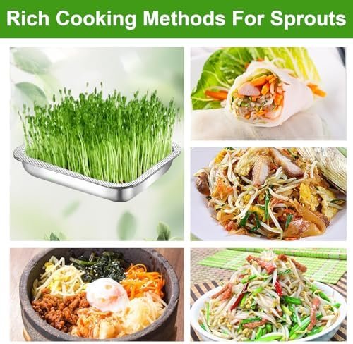 【Easy to Operate】You can pick the seeds first, put them in water, soak them for 8-12 hours, pour the seeds into the stainless steel filter tray and add water in the stainless steel sump, put a layer of paper on the beans or cover them with a lid, add water in the sump, water about 3-4 times a day when the sprouted seedlings grow up to 1 cm. 5-10 days later, the sprouted seedlings will grow well!