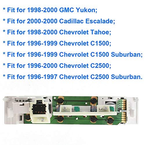 【Fitments】-Fit for 1998-2000 GMC Yukon HVAC control module; for 2000 Cadillac Escalade HVAC control module, for 1998-2000 Chevrolet Tahoe HVAC control module;