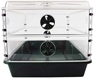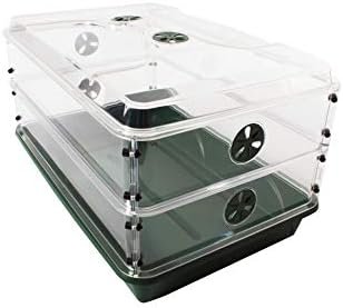 The EarlyGrow 93807 heavy duty oversized herb and seed propagator is designed for use in the germination of seeds protection of young seedlings in an environment which optimizes conditions for germination and growth. The vented lid and height extensions allow for control of humidity during germination and when closed can preserve moisture and heat improving results. The clear dome will not reduce the effectiveness of grow lights nor degrade under UV light. The lid and height extension can be used outdoors for direct sewn seeds during the early and late season protecting the seeds and young seedlings from cold or inclement weather. It is easy to add additional height extensions to permit plants to mature both indoor or outdoors in a sheltered environment. The height extensions can be easily assembled and disassembled using the provided hardware for compact storage when not in use. Non toxic, the 93807 is a friend to organic gardeners.
