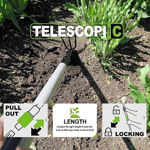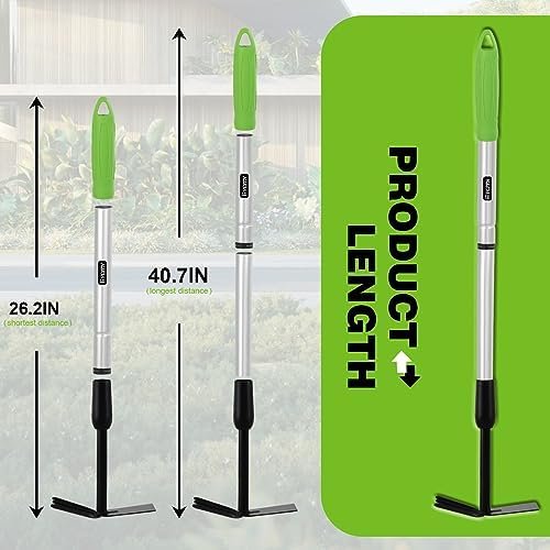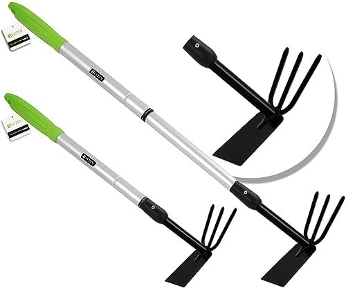 Evcitn Hoe and Cultivator Hand Tiller with 40.7IN Adjustable Long Handle