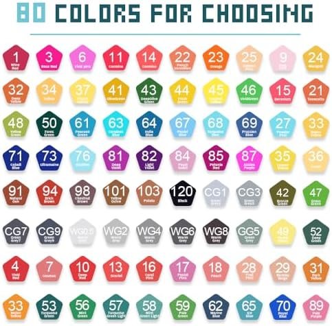 【ALCOHOL MARKERS 80 COLORS】: Alcohol markers set 80 colors are perfect from light and dark of each original color. Fade-Resistent ink in markers maintain the vivid colors on your art work. Easy to blend to create amazing color combination to make a great works. Writing, drawing, sketching, illustrating, designing, comics, all above can realize by our alcohol markers set!