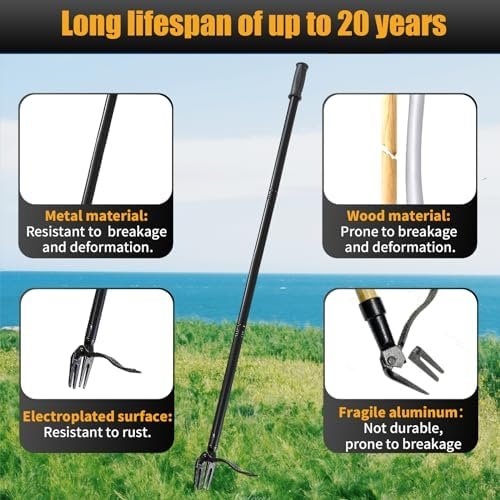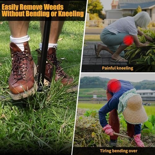 【2024 New Design】We have simplified this standing weed puller into three sections, ensuring no installation or loose parts issues. The thicker and deeper threads make the metal weed puller sturdier, preventing breakage and providing better gripping power