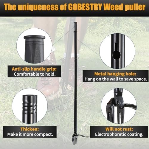 The GOBESTRY weed puller is crafted with high-quality metal, ensuring exceptional durability. Its surface is treated with an electrostatic painting process, enhancing its coverage, resulting in a smoother and more corrosion-resistant finish.