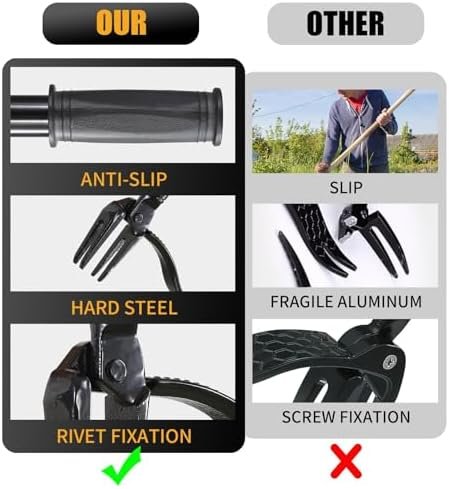 【High-Quality Materials】The 2024 design upgrades the weed puller’s material from cast aluminum to metal iron, providing high strength and preventing easy breakage. The four-claw weed removal head is securely fixed with rivets, ensuring durability and resistance to loosening. Additionally, the smooth weed removal head is easier to clean