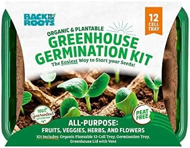 The Back to the Roots Greenhouse Germination Kit is the easiest way to get your garden started and guarantee a bountiful harvest. The 12-cell eco-friendly pots are 100% compostable, plantable, organic, peat-free, and are the ultimate home base for budding seeds and seedlings. This kit features a vented greenhouse lid that allows for excellent ventilation while still maintaining humidity, allowing your seeds to sprout quickly. The seed starting tray includes 12 plantable seed starting cells that offer great drainage and help eliminate transplanting stress. No need to worry about damaging your seedlings when itβs time to move them into your garden β simply plant directly into the soil when you’re ready to transplant! These pots help grow strong and healthy roots, are a USDA Certified 100% Biobased Product, and are ideal for nurturing healthy plants of all kinds β herbs, veggies, fruits, and flowers!